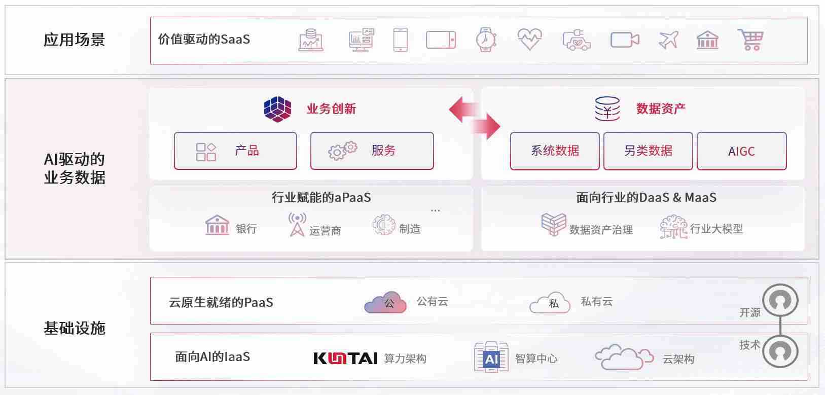 数字时代,,,围绕企业数字化转型的关键要素,,菲律宾亚星数码开创性的提出数云融合战略和技术体系框架,,,,着力在云原生、、、数字原生、、、AI原生和信创产业上架构产品和服务能力,,,为处在不同数字化转型阶段的快消零售、、、、汽车、、、金融、、、医疗、、政企、、、、教育、、、、运营商等行业客户提供泛在的敏捷IT能力和融合的数据驱动能力,,,构建跨界融合创新的数字业务场景和新业务模式,,助力企业级客户建立面向未来的核心能力和竞争优势,,,全面推动社会的数字化、、、智能化转型升级。。